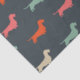 Padrão colorido de silhuetas com cães com pelo longo, com fio e com revestimento liso. Papel de lenço do amante Dachshund divertido para artesanatos ou embrulho de presente. Visite o Doodle World de Jenn para ver ainda mais produtos com este divertido design de Doxies, assim como mais presentes temáticos para raças de cães.