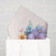 Tissue paper with a beautiful illustration. A heart-shaped bouquet of flowers in pastel blue, green, purple and yellow. With a lovely blue butterfly hovering in front.