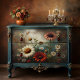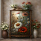 Disoupage Boutique - Daisy Garden at Dusk Decoupage Tissue Paper: Cena de jardim vibrante com margaridas vermelhas e brancas sobre fundo temperado. Impressão de alta resolução Trabalha em superfícies escuras Transferência de peso profissional Ideal para mobiliário, arte de parede e painéis decorativos.