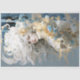 Uma bela senhora de cabelo branco fluindo que é macia e delicada, criando um sentido de pureza e elegância. Eles são exibidos de forma destacada, provavelmente simbolizando a leveza e a graça. Os tons de azul, fornecem uma canvas calma e tranquila que complementa as penas brancas. O azul pode representar a paz ou o céu, acrescentando profundidade à composição.