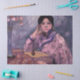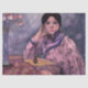 Esta design apresenta uma pintura do Impressionista Japonês Fujishima Takeji (1867-1943). Mostra uma elegante senhora asiática vestindo um quimono tradicional que é principalmente rosa e roxo com um padrão preto. Ela está descansando contra uma mesa na qual uma pequena garrafa de perfume é colocada. Há também um vaso de rosas cor-de-rosa na mesa. É uma imagem de luxo e elegância retidos.