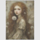 The artwork features a gentle dandelion fairy with flowing auburn hair and translucent wings, surrounded by floating dandelion seeds and soft woodland tones. The muted palette of warm creams, soft browns, and earthy neutrals gives the illustration a vintage, storybook feel that blends beautifully into many craft styles.