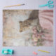Esta design apresenta um leopardo majestoso descansando graciosamente sobre um pano cor-de-rosa com padrão floral, exuando elegância e sofisticação. O padrão detalhado de pele do leopardo contrasta lindamente com o buquê circundante de flores cor-de-rosa e brancas, acrescentando um toque de charme natural. O pano de fundo é uma pintura de abstrato em tons de bege, branco e rosa, criando um ambiente harmonioso e artístico. Um quadro de ouro no lado direito adiciona uma pitada de opulência, Leopardo majestoso, elegância floral rosa, pele detalhada, charme artístico natural, buquê de flores brancas cor-de-rosa, pano de fundo texturizado, rosa branco bege, toque opulente de quadro de ouro ornamentado, leopardo gracioso, design elegante na moda elegante, ambição artística, flair personalizado criativo, composição artística inspirada na vida selvagem das formigas, RHDesign by 2chattyPinks decor, pano com padrão floral, beleza artística luxuosa.