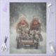 Two bundled-up children sit side by side on a rustic wooden sled, surrounded by gently falling snow. Their knit hats, scarves, and rosy cheeks radiate winter joy as they smile into the snowy air. With a blurred backdrop of snow-covered trees, this heartwarming scene captures the magic of childhood, seasonal play, and the quiet beauty of a snowy day. Perfect for holiday décor, winter-themed storytelling, or nostalgic prints that celebrate togetherness and wonder.