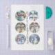A joyful winter collage sheet featuring six 3-inch circular illustrations of snowmen in festive, snowy settings. Each snowman is adorned with cozy hats, scarves, and gloves, often joined by children or fellow snowmen. The backgrounds include charming houses, decorated trees, and softly falling snow—capturing the warmth and magic of the holiday season. Perfectly sized for 3-inch molds, this 10x14 sheet is ideal for ornaments, tags, mixed media crafts, or handmade winter gifts. Each design brings storytelling, nostalgia, and seasonal sparkle to your creative projects.