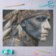decoupage indian art, American Indian warrior art, tribal chief portrait, ceremonial face paint design, feathered headdress imagery, indigenous cultural attire, spiritual leadership symbolism, handcrafted heritage scene, celestial tribal motif, traditional beadwork and feathers, sacred ancestral representation.