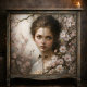 Retrato etéreo com flores de cerejeira. Transforme móveis com arte romântica. Perfeito para espaços elegantes.