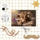 Baby Highland cow decoupage paper design, curly fur calf craft sheet, daisy behind ear journal cover, whimsical farm animal mixed media art, burlap sack rustic background paper, RHDesigns exclusive country cow sheet, wildflower field spring themed design, expressive blue eyes calf image, pastoral baby cow craft paper, charming animal nature decoupage sheet.