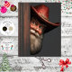 With wide blue eyes and a puckered expression, this cowboy Santa peeks from behind a weathered wooden door like he’s just spotted a holiday surprise—or a cookie thief. His red wide-brimmed hat, round eyeglasses, and full white beard give him classic Claus energy with a western twist. The dramatic lighting and rich textures make this piece a standout in any rustic or whimsical holiday collection.