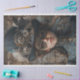 Steampunk Time Keeper Esse trabalho de arte digital impressionante mostra uma senhora vestida de traje teal vitoriano, enfeitiçada com uma série de engrenagens intrincadas e componentes mecânicos, epitomizando a estética do steampunk. Seu chapéu, decorado com engrenagens, penas e um par de óculos, adiciona um toque de capricho e aventura. O pano de fundo apresenta padrões ornamentados que complementam lindamente o tema mecânico, criando uma mistura harmoniosa de elegância e encanto industrial. Essa peça captura a essência da moda do galão, misturando elementos vitorianos vintage com detalhes mecânicos futuristas.