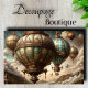Aumente sua visão criativa com o papel de decoupage de dirigível steampunk premium da Decoupage_Boutique. Este design fantástico apresenta balões de ar quente vitorianos ornamentados com detalhes elaborados em latão e cobre, gôndolas decoradas e mecanismos intrincados flutuando entre nuvens dramáticas com uma paisagem montanhosa distante. Este design cria um ponto focal elegante perfeito para bibliotecas domésticas, lojas de jogos ou espaços estilizados em steampunk. COMBINAÇÕES DE CORES: dourado antigo, verde-teal, marrom-cobre, cinza-nuvem e marfim-creme realçam a beleza natural. RECURSOS DE DESIGN: detalhes mecânicos intrincados, trabalhos em metal ornamentados e perspectiva celestial dramática trazem profundidade aos seus projetos. PERFEITO PARA: caixas de lembranças de madeira, arte de parede de sala de jogos, livrarias de fantasia, cafés steampunk, móveis de destaque e painéis decorativos. Ideal para uma variedade de projetos grandes