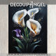 Eterno e sofisticado, este design apresenta lírios brancos elegantes que se destacam graciosamente contra um fundo preto profundo. Pureza simbolizante, elegância e renascimento, o lírio calla é uma flor de beleza refinada e significado profundo. O contraste entre suas pétalas suaves e delicadas e o pano de fundo negro melhora sua presença serena e majestosa, fazer-a uma escolha perfeita para um projeto de dissociação artístico e sofisticado