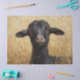 Uma pintura rústica de uma cabra negra em um campo de trigo ouro, capturando a essência pacífica da vida rural com tons quentes e sujos.