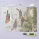 Os pássaros-pássaros europeus num jardim com uma fonte de pedra. Excelente para desacoplamento.