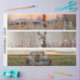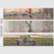 A whimsical three-panel collage designed for 26x6 handsaw decoupage, featuring vibrant rural scenes and charming animals. The top panel showcases a proud rooster perched on a rustic fence, framed by pink and white florals and a sunset sky. The middle panel highlights a sweet donkey adorned with a floral crown, surrounded by soft lavender blooms. The bottom panel captures a cozy moment—a Highland cow lounging in the bed of a vintage turquoise pickup truck, nestled among sunflowers and pillows. Each horizontal design blends rustic charm, playful storytelling, and farmhouse elegance, perfect for transforming vintage blades into heartwarming wall art.