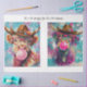 Whimsical Western cow art designed for 11x14 canvas—no edge blending required. This vibrant duo features two stylish cows in cowboy hats and oversized glasses, each blowing a bubblegum bubble. One cow sports red polka-dot frames and floral accents, while the other flaunts bright pink glasses and multicolored fur. Set against abstract, paint-splattered backgrounds, these bold designs blend rustic charm with pop-art flair. Perfect for decoupage, journal covers, or statement wall art in farmhouse, boho, or eclectic collections.