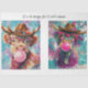 highland bubblegum cow art, cowboy cow canvas, whimsical Western decor, 11x14 canvas, no blend edges, rustic pop art, cowgirl wall print, decoupage paper, farmhouse cow design, colorful animal art, boho Western cow