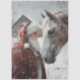 Santa Claus horse winter moment, snowy barn rustic Christmas scene, red coat fur trim Santa, gentle horse festive snowy setting, heartwarming holiday countryside illustration print, magical seasonal storytelling art piece, faith-inspired Christmas animal portrait, serene snow-covered festive image, traditional Santa rustic winter design, emotional holiday connection artwork.