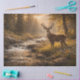 deer forest artwork, wildlife sunset scene, rustic nature decor, majestic buck illustration, woodland stream art, outdoor cabin wall art, hunting lodge decor, forest landscape print, golden hour wildlife painting, serene nature artwork, rustic country home decor, woodland animal design, peaceful forest scene, wildlife decoupage paper, nature lover gift art