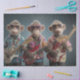This cheeky panel features three anthropomorphic monkeys dressed in matching red Hawaiian shirts with yellow floral prints, each wielding a pink electric guitar and striking a serious rockstar pose. With oversized sunglasses and confident expressions, these primate performers channel pure stage energy against a soft gradient backdrop. Their coordinated outfits and instruments create a playful yet stylish vibe—perfect for music-themed trays, whimsical wall art, or layered mixed media projects.