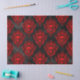 Este design de Halloween tem crânios vermelhos de sangue... dentro rico... armações inspiradas em gótica... sobre uma cinza escura/fundo preto. Perfeito para desacoplamento, empacotamento de presentes ou artesanatos de papel. Certifique-se de checar a bolsa de presente!