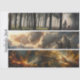 spiritual decoupage panels, mystical forest artwork, divine connection collage, RHDesigns sawblade trio, celestial mixed media paper, cosmic creation imagery, robed figure with staff, forest pilgrimage scene, handcrafted devotional art, bold seasonal paper, layered spiritual storytelling, faith-inspired crafting paper, textured cosmic background, sacred journey decoupage, holiday tray design, whimsical spiritual collage, RHDesigns by 2ChattyChicks, vibrant DIY sacred project, mystical decoupage paper.
