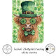 St. Patrick’s Day decoupage paper, Highland cow artwork, Irish holiday décor design, shamrock background, whimsical green cow illustration, farmhouse St. Paddy’s Day craft paper, festive Irish theme decoupage sheet, mixed‑media holiday art, furniture art supplies, bold green St. Patrick’s Day design, rustic cow illustration.