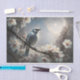 Transforme móveis comuns em peças de arte serenas com este design etéreo do pássaro azul da montanha. Esta cena noturna captura um momento tranquilo enquanto um pássaro canoro cinza-azulado repousa entre flores de cerejeira iluminadas sob uma lua brilhante. A obra de arte equilibra magistralmente tons frios e quentes, com as penas azul-prateadas do pássaro complementando o brilho dourado quente do luar nas flores imaculadas. Cada pétala mostra detalhes requintados, desde bordas translúcidas até estames delicados, criando uma atmosfera de contemplação pacífica.