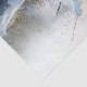 The image is an artistic depiction inspired by "Alice in Wonderland." It features a young girl, who we can assume is Alice, wearing a large blue bow and a blue hat adorned with a golden pocket watch. Her face is partially obscured, adding a sense of mystery to the image. Beside her is a white rabbit with blue eyes, holding a pocket watch. The background is a mix of abstract textures and colors, predominantly blue and white, with splashes of other colors. The overall style is whimsical and fantastical, capturing the essence of the "Alice in Wonderland" theme.