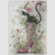This black cat sits poised in a tall red polka-dot boot, her green eyes glowing beneath a wide-brimmed white hat crowned with a pink flower. A delicate parasol curls in her paw as swirling vines, butterflies, and blossoms surround her. Perfect for decoupage, mixed media, or furniture art that celebrates feline elegance and whimsical fashion.