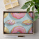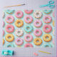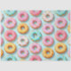 Deliciosos donuts de creme com várias cores e confetes em um design de fundo azul.