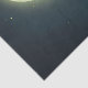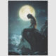Uma sereia-serena repousa sobre uma costa rochosa sob uma lua de cheio brilhante, a sua cauda a brilhar refletindo a magia da noite.