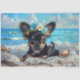 Adicione um toque delicioso às suas artesanatos com este papel preto de tecido da praia tropical Chihuahua foppy. Apresentando um charmoso Chihuahua negro adornado com uma coroa floral contra um fundo oceânico sereno, esta design é perfeita para amantes de animais de estimação e projetos temáticos de praia. Use-o para empacotamento de presentes, rascunho ou crio de designs de desacoplamento exclusivos. Uma mistura perfeita de elegância e elegância, este papel de tecido elevará seus esforços criativos com seu vibrante encanto costeiro.