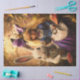 A imagem mostra uma cena fantástica, com um coelho branco grande e uma pessoa vestida com um vestido vitoriano azul e roxo, com avental branco. A pessoa está vestindo um arco roxo grande com uma coroa em cima da cabeça e segurando um relógio de bolso. O coelho também está segurando um relógio de bolso e tem um monóculo. O fundo é uma floresta balnear com cogumelos e árvores torcidas. A imagem é interessante e relevante, pois parece inspirada pela história de uma jovem loira em terra maravilhosa mostrando elementos icônicos como o coelho branco e o relógio de bolso. cena branca, coelho branco, vestido vitoriano, relógio de bolso, monóculo, floresta branca, cogumelos sobredimensionados, árvores tortuosas, jovem loira Alice inspiracional, RHDesign pintos de chatite.