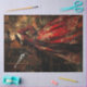 Um artilheiro vestido vitoriano, vestido com um vestido vermelho, elaborado e ornamentado, com padrões florais dourados. O indivíduo também está vestindo um chapéu preto enfeitado com decorações e segurando um revólver prateado em uma mão. O fundo parece ser uma sala pouco iluminada, ao estilo vintage, com vários objetos, como uma lâmpada, livros e outros itens antigos em uma mesa e prateleiras. A estética geral da imagem combina elementos da moda vitoriana com um tema ocidental ou steampunk, fazer que visualmente impressiona e único. Gunslinger, Ornamentado vermelho, padrões florais dourados, chapéu decorado preto, revólver prateado, itens antigos, moda vitoriana, tema do boi ocidental, cena iluminada, imagem única e impressionante