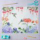 SEM VERSÃO DE TEXTO para coordenar com o design inspiracional. A mão de aquarela pintou Fuchsias cor-de-rosa claro, Cristóvão laranja, Lírios peruanos cor-de-rosa quente e Hídrangas azuis capturam a beleza do verão no jardim. Flores frescas e coloridas atraem dois beija-flores. Todas as imagens foram criadas de uma artista e designer internacionalmente licenciada, Audrey Jeanne Roberts, autora.