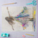 A imagem mostra uma menina de cabelo comprido vestindo um vestido branco de renda que foi espalhado com várias cores de tinta. Ela parece estar girando ou dançando, enquanto o vestido e o cabelo estão em movimento. O fundo também é espalhado com tinta, criando uma cena vibrante e dinâmica. Essa imagem é interessante porque captura o movimento e a energia da pessoa, assim como a expressão artística e colorida através das pinturas. Traje branco, pintura, pessoa dançante girante, cena dinâmica vibrante, expressão artística colorida, movimento e energia, fundo de pintura espalhado.