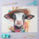 A imagem mostra uma vaca digitalmente ilustrada vestindo um chapéu de vaqueiro e um cachecol colorido. O rosto da vaca é exibido com destaque, com ouvidos grandes e olhos expressivos. O fundo é repleto de várias cores, dando à imagem um toque lúdico e artístico Vaca Whimsical com chapéu de cowboy, cachecol colorido em vaca charmosa, salpicos artísticos de cores vibrantes, imagem de vaca lúdica e criativa, ilustração destacada do rosto de vaca, personagem de vaca digitalmente ilustrado, olhos expressivos e orelhas grandes, fundo vivo com cores brilhantes, atmosfera alegre em que é única, vaca com chapéu e cachecol