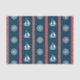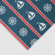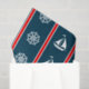 Design náutica com barco à vela e decoração de bússolas em fundo listrado vermelho, azul e branco