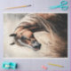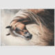 Papel de tecido de dissociação com uma bela ilustração de retrato de um cavalo Palomino, perfeito para adicionar um toque de elegância e charme natural aos seus projetos de artesanato e decoração.