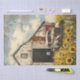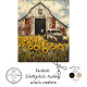 Uma imagem cativante mostrando a charmosa decadência de um celeiro vermelho-curdo e um caminhão branco antigo em meio ao amarelo brilhante dos girassóis sob um céu azul nublado. Esta paisagem rural serena contrasta lindamente com o charme rústico das estruturas feitas pelo homem com a beleza vibrante da natureza, evocando um sentimento de nostalgia e desamparo.