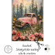 Apresentando um velho caminhão cor-de-rosa-meteorito em meio a um campo exuberante de flores cor-de-rosa, colocado contra o pano de fundo de torres de pinheiros verdes e montanhas distantes sob um céu sereno pontilhado de aves. Arte digital criada por RHDs por dois pintos de chattim para desacoplamento para mobiliário, canvas e poster e decoração doméstica.