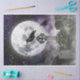 O fundo púrpura de areia para o cenário da lua de cheio, com uma corda sentada numa cruz Celta com uma cruz adicional mais baixa, num cemitério, faz uma dissociação do excelente ou uma capa de presente. 18 lb de papel tecidular. Você também pode facilmente transferir esse design para papel de embrulho pesado para transferências de decoração de móveis.