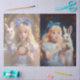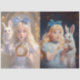 Conheça um casal de meninas loiras que sonham com aventuras! Eles estão apertando relógios de bolso de ouro, uma dica de que o tempo é essencial. Está na hora da Páscoa? Empolgada no ombro está o curioso coelho branco, instando-a a se apressar e a outra está esperando pacientemente. Ela está vestindo um vestido azul para adicionar a seu coelho páscoa de charme caprichoso com garota, vestido azul menina, hora do relógio para Páscoas, coelho feminino caprichoso, papéis de descampar, cafetões de móveis, procurando tempo e Páscoa,