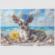 Delícia no charme caprichoso deste filhote Chihuahua visto, adornada com sotaques florais azuis e amarelos vibrantes. Colocado contra um pano de fundo tranquilo de praia com conchas e rendas, esse papel de tecido de dissociação é ideal para artesanatos de praia, álbuns ou empacotamento de presentes. Perfeito para amantes de animais de estimação e entusiastas de decoração costeira, esta design única traz serenidade à beira-mar para os seus projetos DIY.