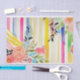 Fundo Floral Preenchido com faixas e Xadrezes. Toques das cores dos padrões Amarelo Brilhante, Rosa, Verde e Púrpura. Pintura Por Aquarela Whimsical.