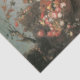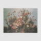 Imagem horizontal do cheio. 1 de 3 imagens de coordenação. A design tem um roteiro de epemera layou colocado sobre uma elegante e antiga pintura de óleo de mestrado de vários buquês de flores silvestres em vasos, cestos e potes de terracota. Recuperação de imagens e colagem gráfica desenhada por uma artista e designer internacionalmente licenciada, Audrey Jeanne Roberts, copyright.