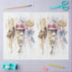 A imagem é uma ilustração de aquarela com vários itens relacionados ao beisebol dispostos verticalmente. Da esquerda para a direita, os itens incluem um taco de beisebol, uma luva de beisebol, um capacete vermelho de baseball com a letra "B" nele, duas bolas de basebol, um troféu cheio de pipoca, e um recipiente de pipoca com um arco azul. O fundo tem uma textura macia e pastel.Esta imagem é interessante e relevante, pois captura a essência da cultura do beisebol, combinando elementos do esporte com itens comemorativos e de lanche, criando uma cena nostálgica e lúdica. Ilustração de aquarelas, itens relacionados ao beisebol, taco de baseball, luva de baseball, capacete vermelho de baseball, bolas de baseball, troféu cheio de pipoca, recipiente de pipoca listrada, fundo pastel, cultura de beisebol, nostálgico e lúdico,