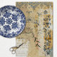 Papel de Tecido de Decoupage criativo e exclusivo usando uma matriz de texturas, padrões e ilustrações de vintage em paletas vibrantes, sem som e coloridas. Perfeito para desacoplamento, reserva de sucata e outros artesanatos de papel. O papel de tecidos em francês angustiado da Vintage apresenta motivos decorativos, figuras e padrões florais de ornamentado com tons de azul, um fundo texturizado de burlap, com dicas de tipografia vintage, e uma dica de local.
