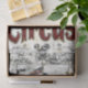A imagem é uma ilustração de estilo vintage com um tema de circo. O foco central é um cavalo carrossel com um cavaleiro vestido com uma fantasia de circo. A cobertura do carrossel é decorada com listras vermelhas e brancas e detalhes do ouro do ornamentado. Acima da cobertura, há duas bandeiras americanas. O fundo inclui padrões decorativos e intrincados e esboços de outros artistas de circo, como acrobatas e cavaleiros. A palavra "Circo" aparece de forma destacada no fundo em letras grandes, negrito, vermelhas, com uma letra decorativa. A estética geral é nostálgica e evoca uma sensação de entretenimento clássico em circo. Ilustração de circo, cavalo carrossel, cavaleiro em fantasia, listras vermelhas e brancas, detalhes do ouro, bandeiras americanas, entretenimento clássico de circo.